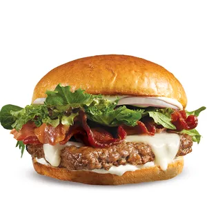 Hamburguesa con Carne de 4 Oz (114G), Bacon, Queso Cheddar, Salsa de Queso y Mayonesa